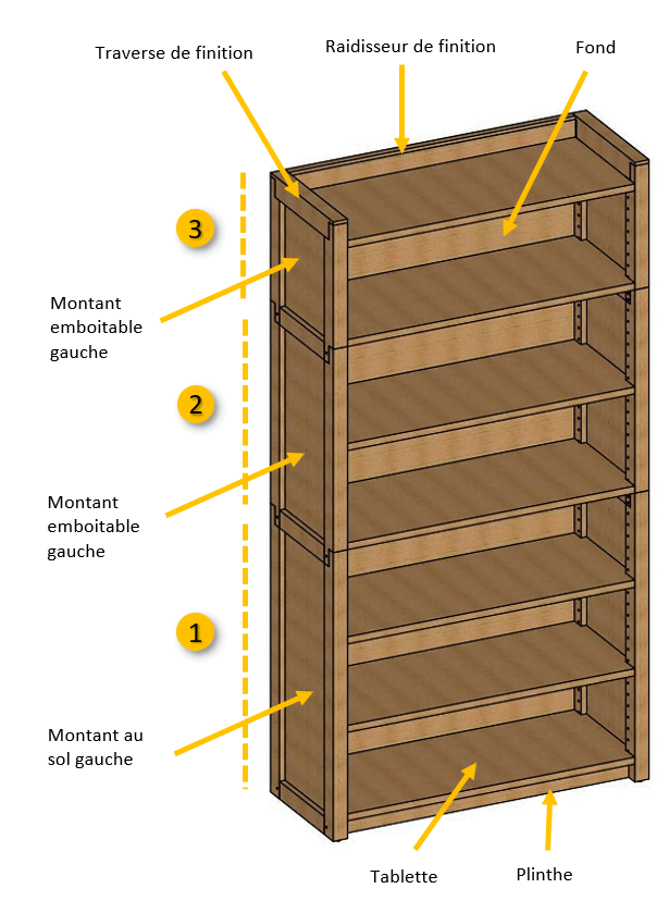 Schéma d’une bibliothèque trio modulable