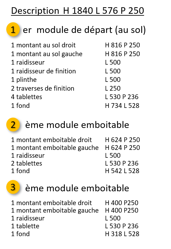 Meubles transformables en largeur et en hauteur en y ajoutant des modules complémentaires.
